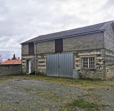 Sur un terrain de 12330 m², une première maison d'une surface habitable de 62 m² à aménager selon vos besoins et un second batiment de 180 m² vous permettrons de vous installer.
