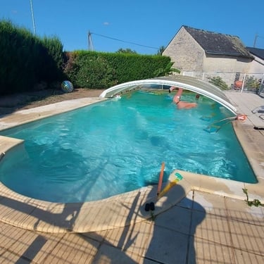 Son terrain spacieux de 1400 m² accueille une piscine de 10x5, offrant un espace extérieur idéal pour se détendre et profiter des journées ensoleillées.